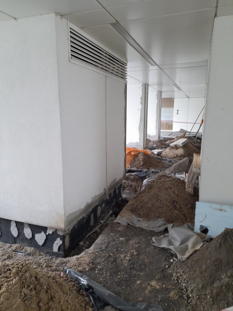 W drugim kwartale czerwca Deweloper, w odpowiedzi na zgłoszenie reklamacyjne Wspólnoty Mieszkaniowej, wykonał działania mające na celu naprawe izolacji w podcieniach pomiędzy 4 a 5 klatką schodową. Przystąpiono do kompleksowych prac, które mają na celu zapewnienie trwałego rozwiązania problemu wilgoci. Wykonano podwójną izolacje oraz dodatkowe wywinięcia warstwy izolacyjnej aby wyeliminować przyszłe występowanie podsiąków wilgoci. Wykonane naprawy zostały przeprowadzone zgodnie z profesjonalnymi standardami, aby zapewnić optymalne warunki i trwałość izolacji.