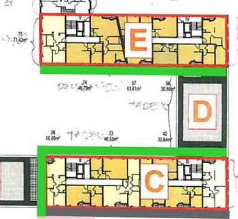 Informujemy, że w dniach 03 lipca – 12 sierpnia 2023 r. będą wykonywane prace gwarancyjne związane z kompleksową naprawą elewacji klatek schodowych numer 2, 3, 4 i 5 od strony patio. Szczegółowy zakres prac został oznaczony kolorem zielonym na poniższym obrazie.