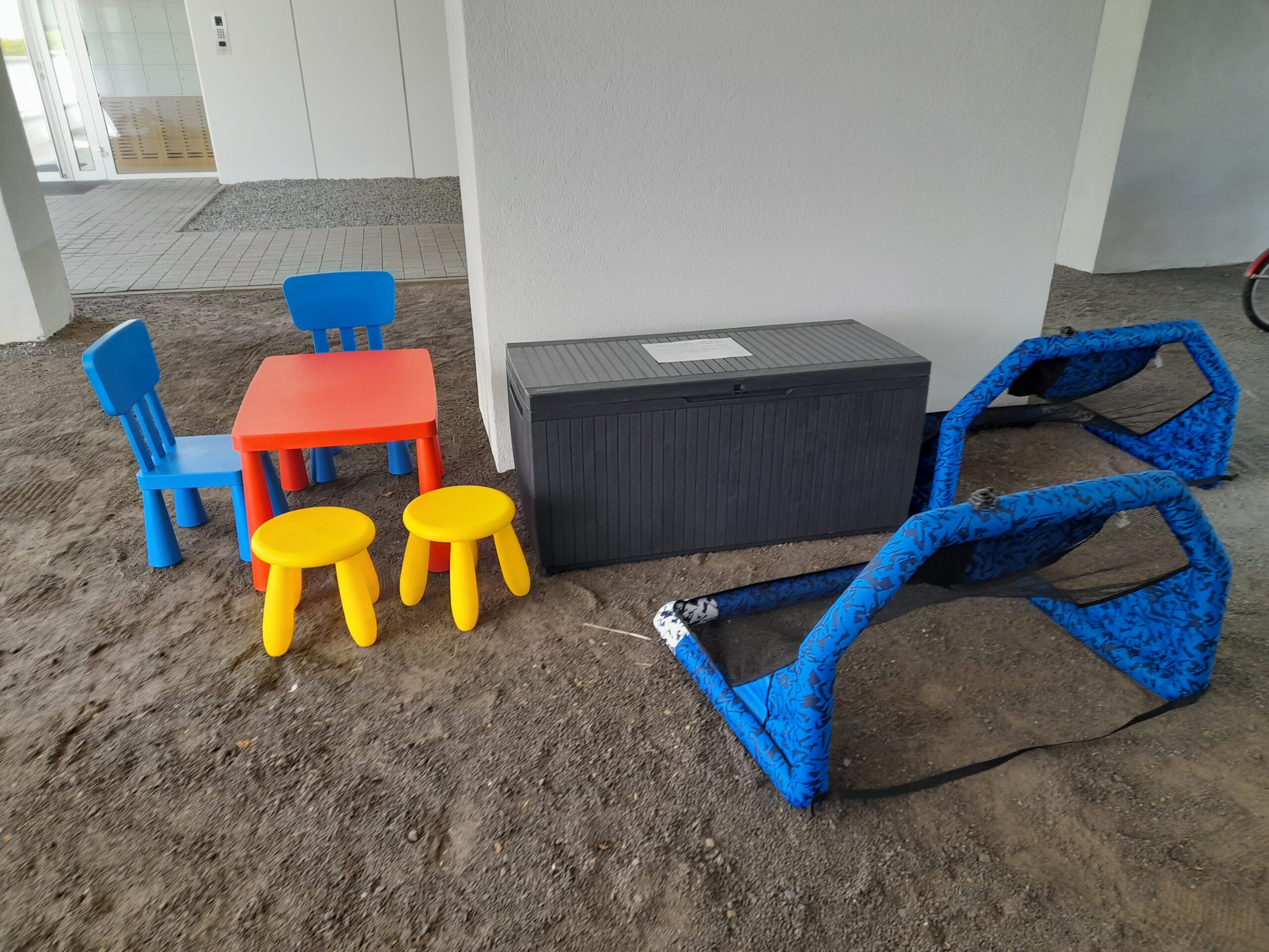 Informujemy, że zgodnie z Państwa wnioskami w podcień pomiędzy 4 i 5 klatką zakupione zostały pierwsze zabawki dla Dzieci wraz ze skrzynią do ich przechowywania. Liczymy, że w ramach inicjatywy sąsiedzkiej zgodnie z Państwa zapowiedziami skład zabawek się powiększy.