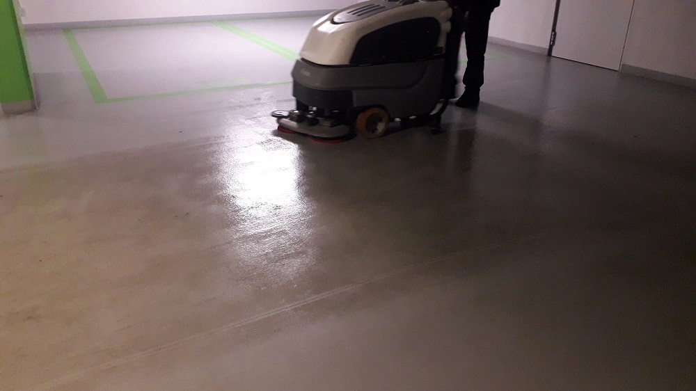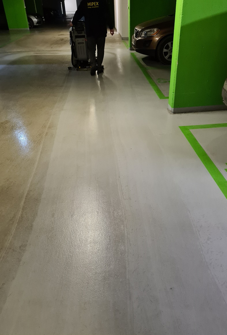Edit: Poniżej prezentujemy Państwu efekty mycia garażu. Na posadzkę przed czyszczeniem mechanicznym został nałożony specjalny płyn co pozwoliło na doczyszczenie długotrwale zalegającego brudu.