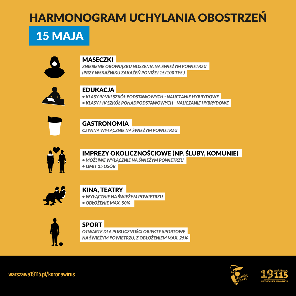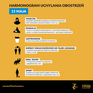 • nabożeństwa z limitem osób: limit 1 osoby na 15 m2 w świątyniach, rekomendacja odprawiania ceremonii na świeżym powietrzu
