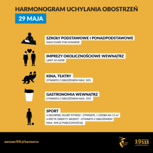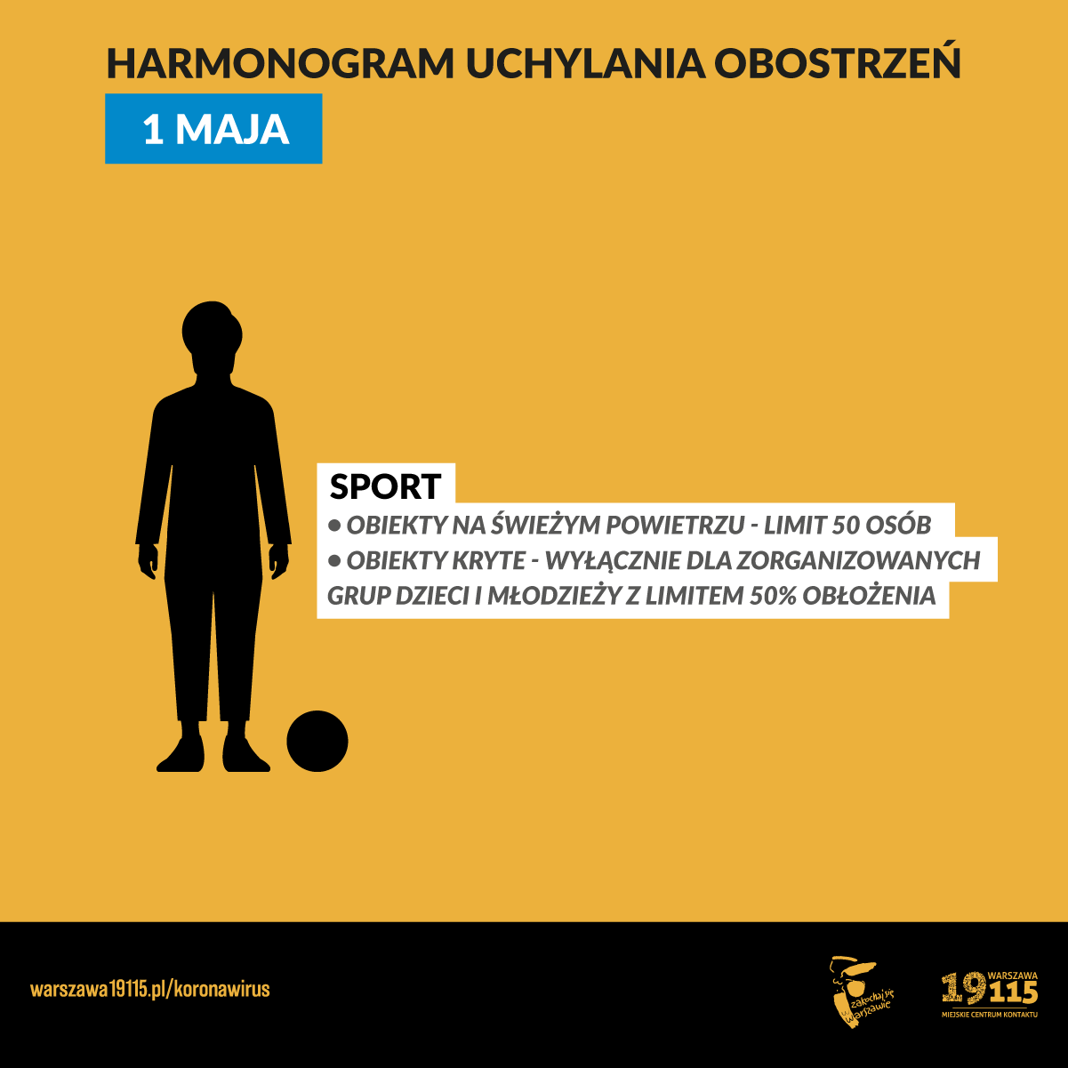 • uprawianie sportu w krytych obiektach sportowych oraz na basenach   dla zorganizowanych grup dzieci i młodzieży, max. 50 proc. obłożenia obiektu