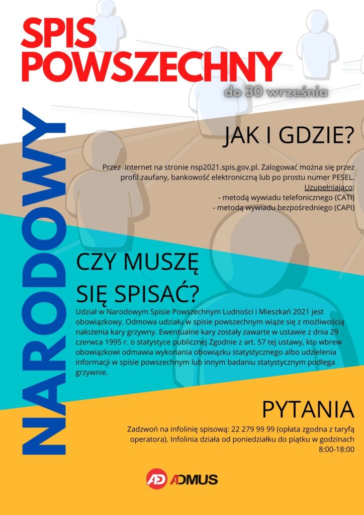 Informujemy , że udział w Narodowym Spisie Powszechnym Ludności i Mieszkań 2021 jest obowiązkowy. Odmowa udziału w spisie powszechnym wiąże się z możliwością nałożenia kary grzywny. Ewentualne kary zostały zawarte w ustawie z dnia 29 czerwca 1995 r. o statystyce publicznej Zgodnie z art. 57 tej ustawy, kto wbrew obowiązkowi odmawia wykonania obowiązku statystycznego albo udzielenia informacji w spisie powszechnym lub innym badaniu statystycznym podlega grzywnie.
