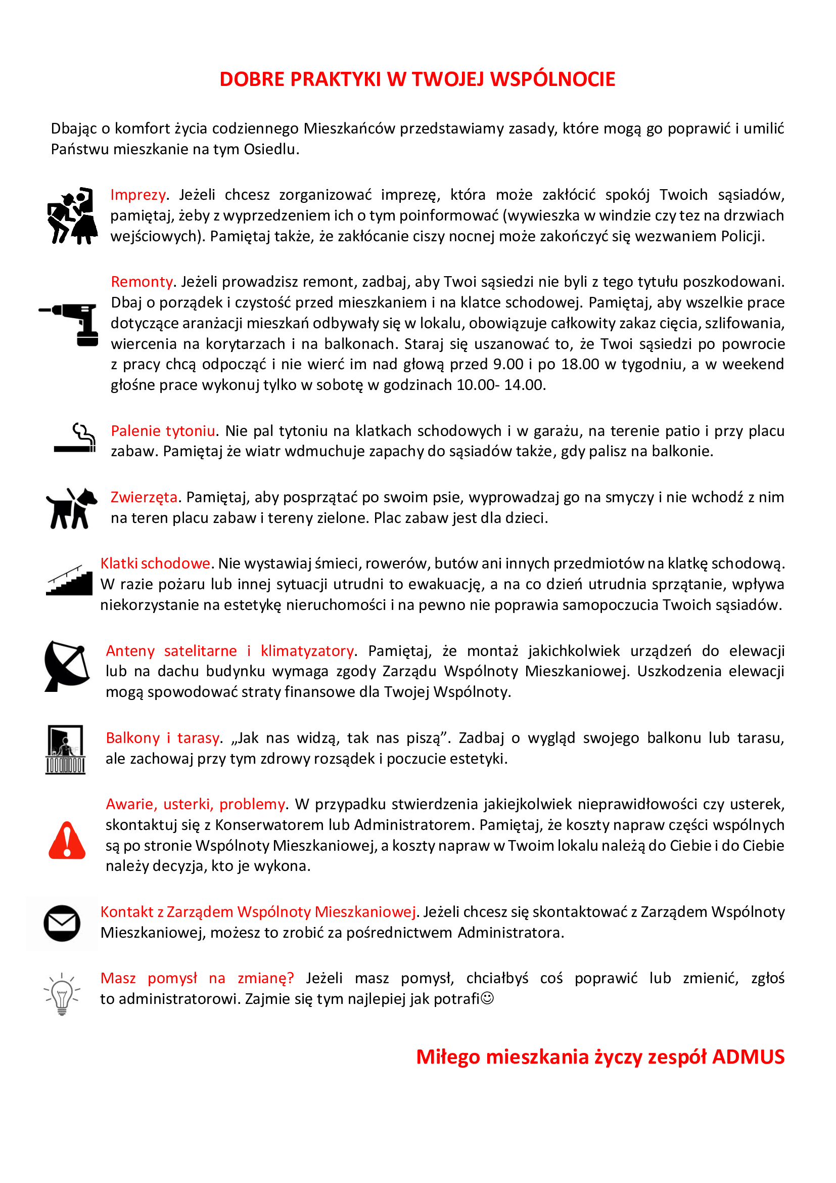 Przypominamy, że obecnie wysokość opłat oraz numery rachunków do wpłat zaliczek na poczet utrzymania nieruchomości wspólnej pozostają bez zmian.